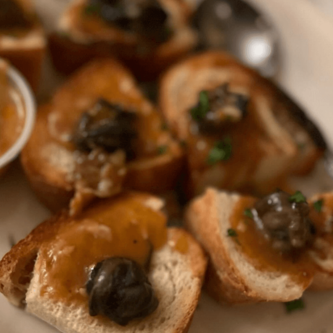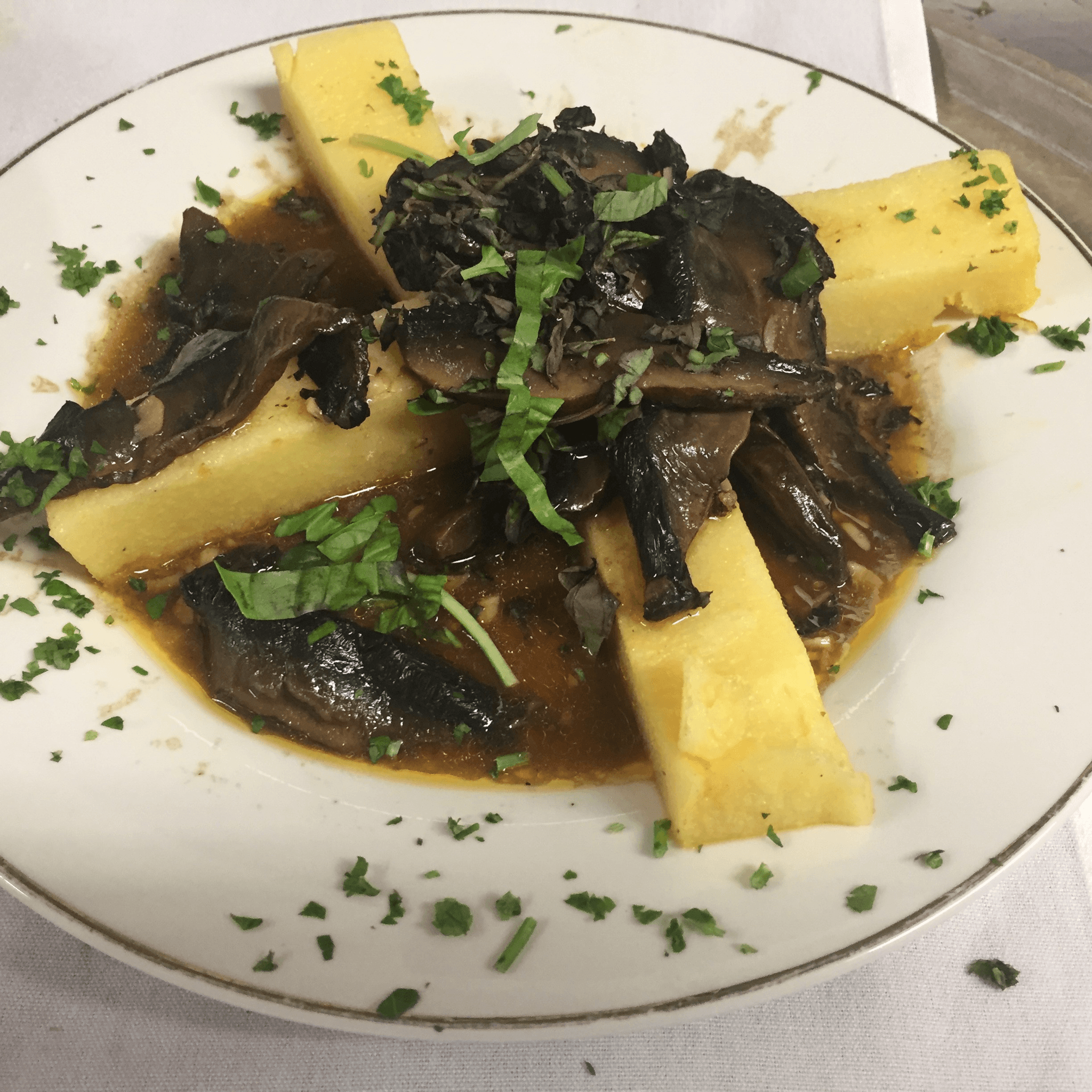 Mushrooms, roasted pepper, Madeira wine, potato of the day