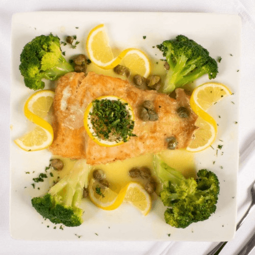 Topped with lemon sauce served with vegetable of the day add options same as salmon piccata